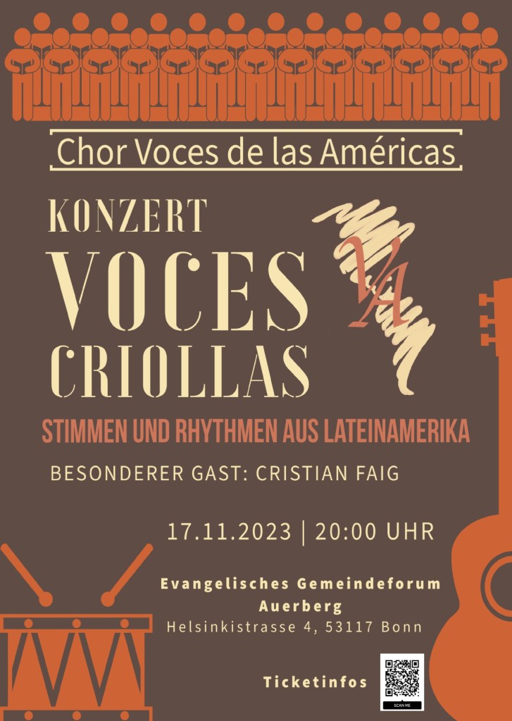 2023: Voces Criollas. Ein mitreißendes Konzert, bei dem die vielfältigen Klänge und Rhythmen Lateinamerikas im Mittelpunkt standen. Als besonderer Gast ist mit uns der Solist Cristian Faig aufgetreten. In der ausverkauften Location war die Stimmung fantastisch!